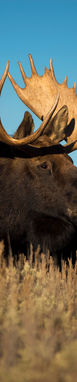 A bull moose lifts his head out of the sage brush to look at another approaching bull in Grand Teton National Park, Wyoming.