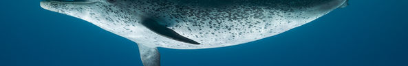 An Atlantic spotted dolphin swims upside down under the water's surface off the shores of the Bahamas.